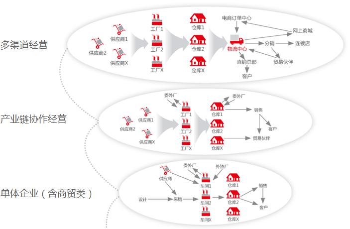 支持各類企業全生命周期的經營與管理,包括單體(含多工廠)產業鏈協作經營,多渠道經營的工業及商貿企業。