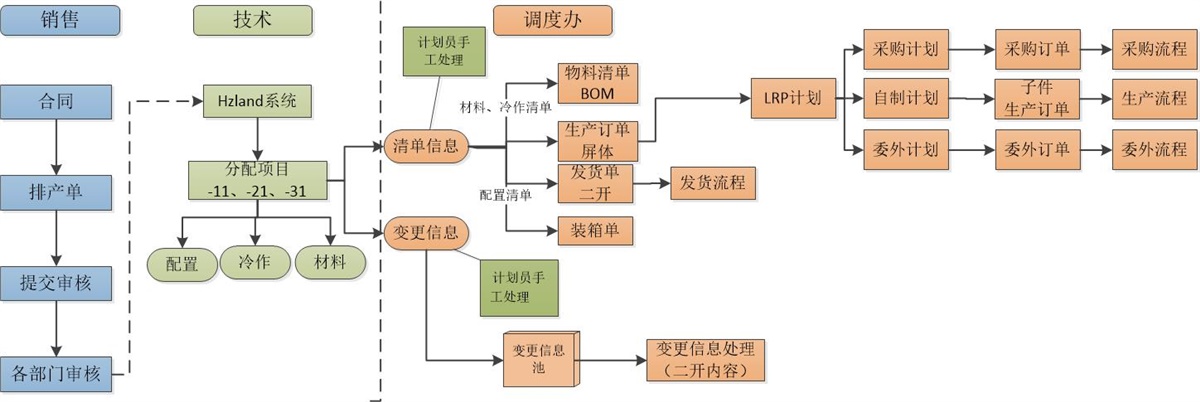 3)銷售到設計:通過客戶自己的hzland系統,對客戶訂單進行設計生產,拆分成配置清單、冷作清單、材料清單;